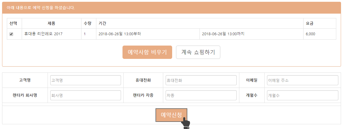 03. 예약사항 작성 후 "예약신청" 버튼 클릭